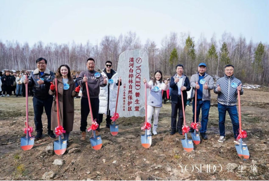 活动现场,养生堂YOSEIDO与漠河林业局、合作伙伴、消费者举办“白桦林生态立碑仪式”,共同承诺严格遵守白桦轮采制度,践行“人与自然共生”的理念。