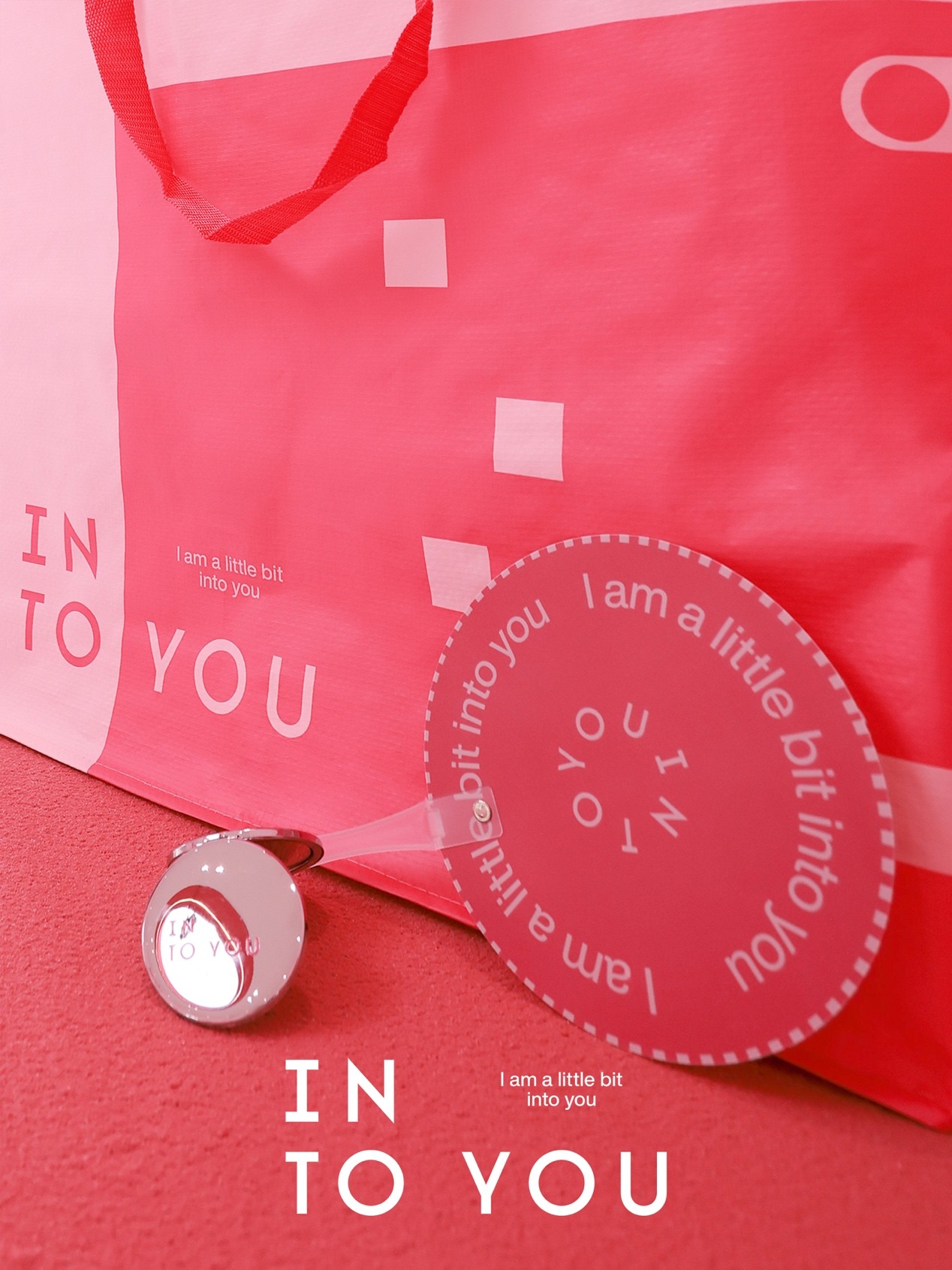 此外,在现场拍照打卡分享还能获得超实用的精美周边大礼包:能纳凉能打光的手持扇,能随时确认美貌的翻盖镜,超巨大超实用手提袋!只为让每个光顾INTO YOU的草莓星人都能有高质量出片,体验愉悦感满满~